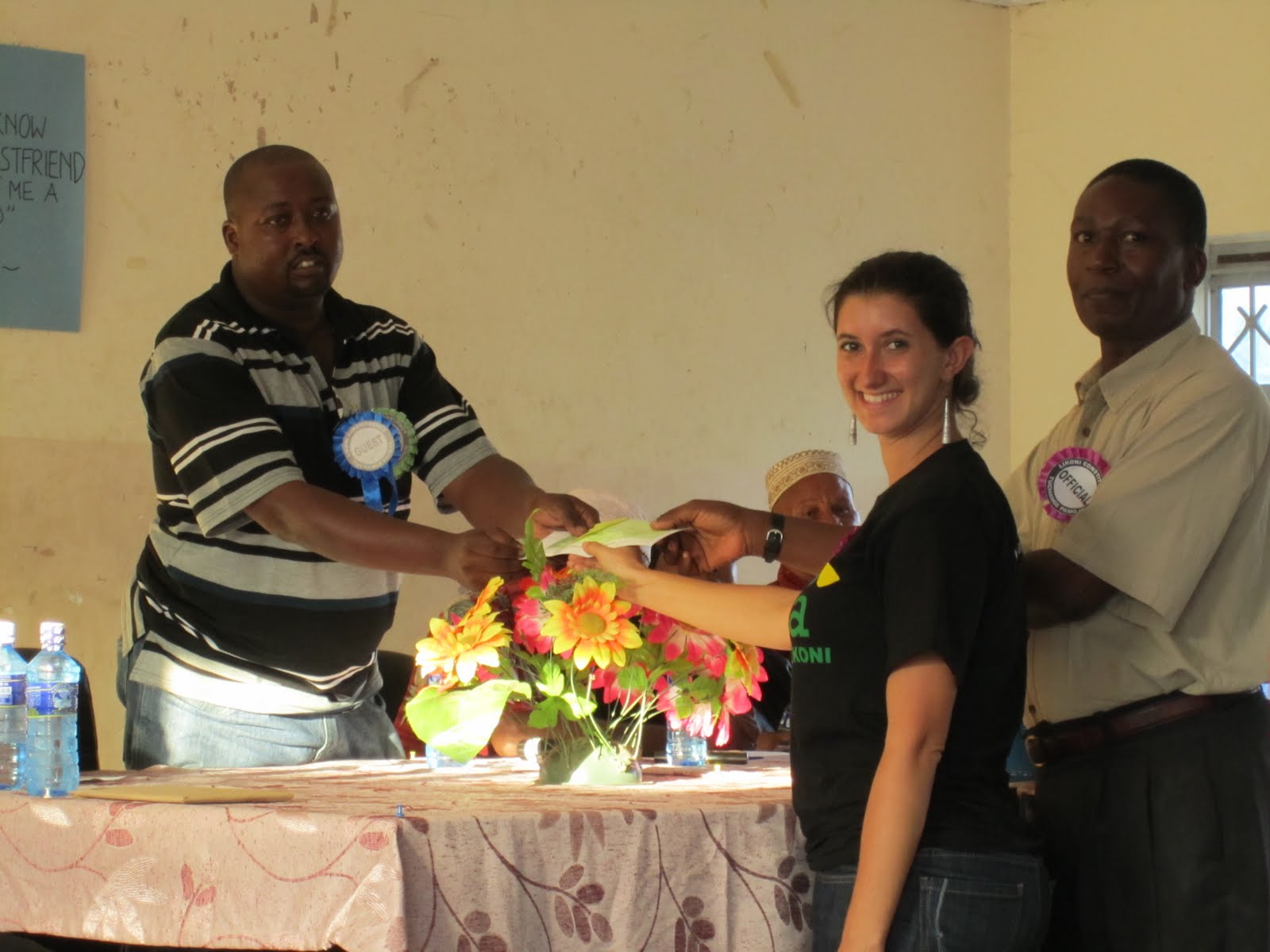 SDL Foundation, Post Bank, Co-operative Bank, Likoni’s Chief, local administration representatives, and the many teachers and education leaders who attended and contributed to our cause. We also thank Likoni’s Library Steering Committee,comprising of Primary and Secondary School Head Masters,representatives from the Ministry of Youth Affairs, Hatua staff, and other stakeholders for their work to equip Likoni’s Library. We thank our scholarship students and their parents for assisting to prepare the venue and clearing up after the event, and finally, we thank Desi Ahmed and Juma Mwanyiro , Hatua’s Library Development interns, who worked exceptionally hard to organize the Harambee.Edwin Muraguri of Post Bank Handing over the check to Committee members