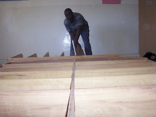 After being purchased and planed in town we transported our timber across the ferry to Likoni and offloaded it in the library. On Friday 11th March, our fundi (carpenter) began building.