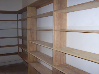 When work on the shelves is finished, we’ll begin building reading tables. Stay tuned for word of more progress!
